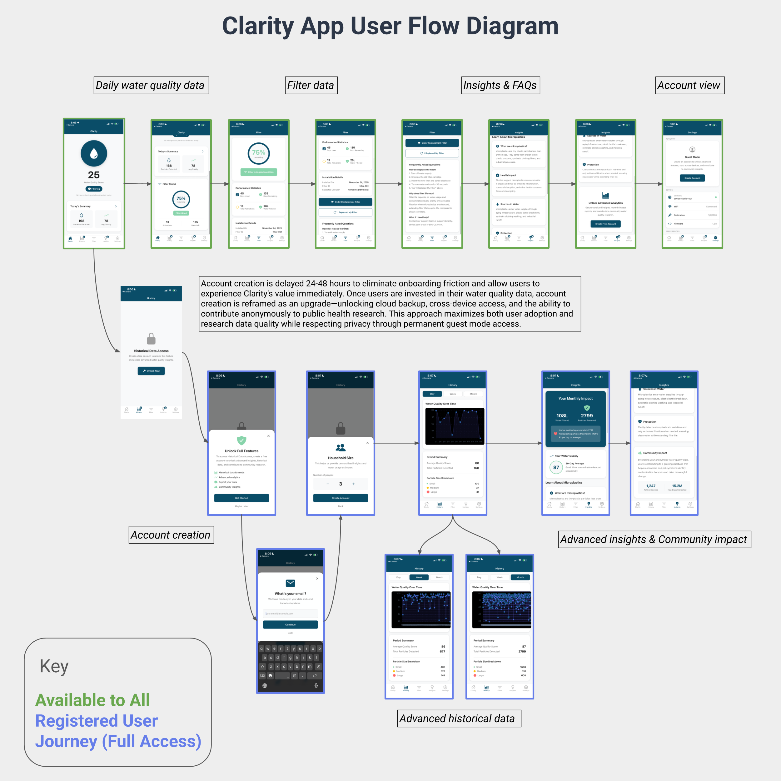 Clarity will help facilitate large scale on-site data collection that will be part of a citizens science project to target problematic water processing sites leaking microplastics. It will be low cost compared to traditional detection methods by using lasers and cameras to perform optical scattering. We will also have a compatible mobile app that will display a map of data points, an individual's water micro-plastic levels, and individualized recommendations.