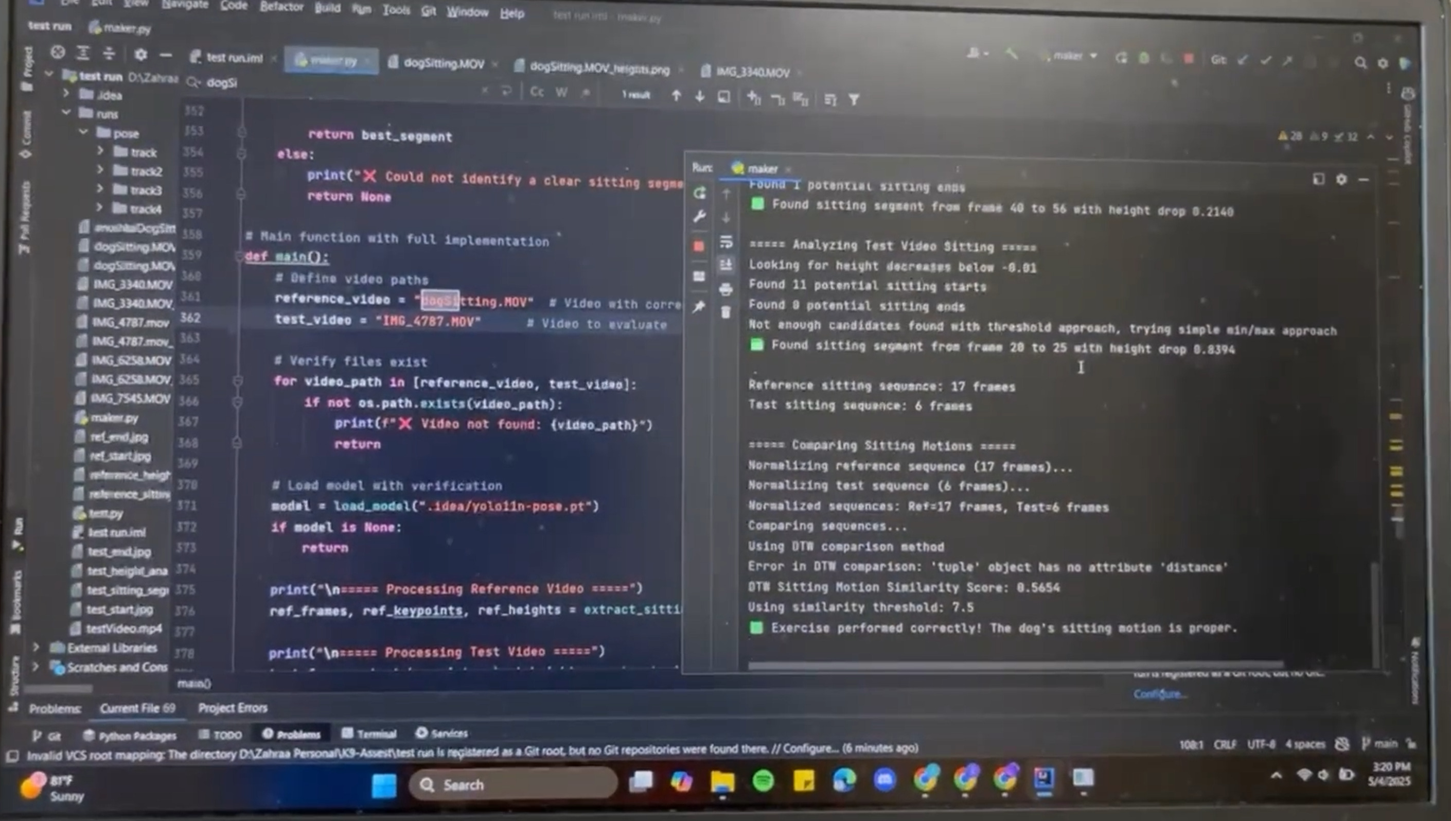 The app contained a curriculum based on the industry standards and Machine Learning powered checkpoints that would track progress after each module. These checks would involve using a video of the dog and an Ultralytics model to check if the dog's final position of the exercise was correct.